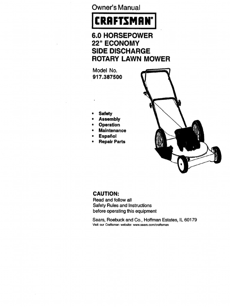 Product Name: Craftsman 6.0 lawn mower manual clearance