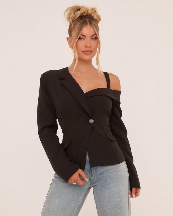 Product Name: Black one shoulder blazer dress clearance
